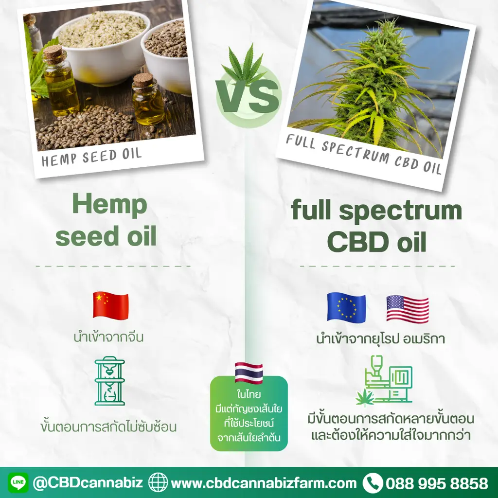 ระหว่างน้ำมันกัญชงเมล็ด (Hemp seed oil) และน้ำมันกัญชงฟูลสเปกตรัมCBD ขึ้นชื่อน้ำมันกัญชงเหมือนกัน แต่ใช้ประโยชน์ต่างกัน CBD Cannabiz farm ฟาร์มกัญชงซีบีดี กัญชงเพื่อสุขภาพ เราปลูก CBD ขอเสนอมุมมองความแตกต่างของน้ำมันทั้ง 2 ชนิด เพื่อการเลือกใช้ได้ตรงเป้าประสงค์ คุ้มค่ากับเม็ดเงินที่จ่ายไปครับ